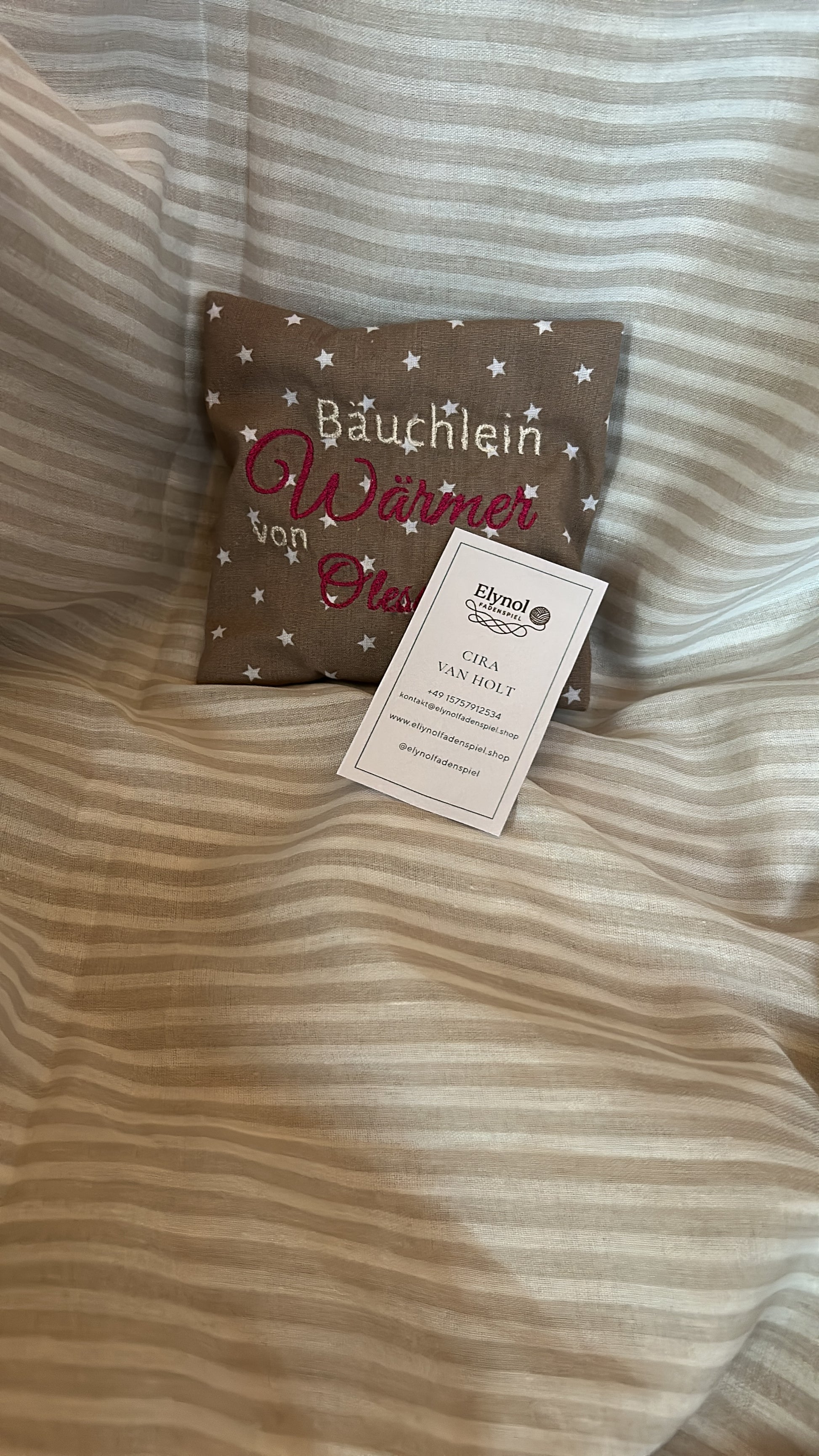 🌾 Bäuchlein Wärmer mit Namen – handgemachter Körnerkissen-Bezug 12x12 cm mit Dinkelkissen